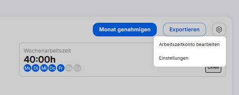 Wähle rechts oben das Rädchen und dann "Arbeitszeitkonto bearbeiten".